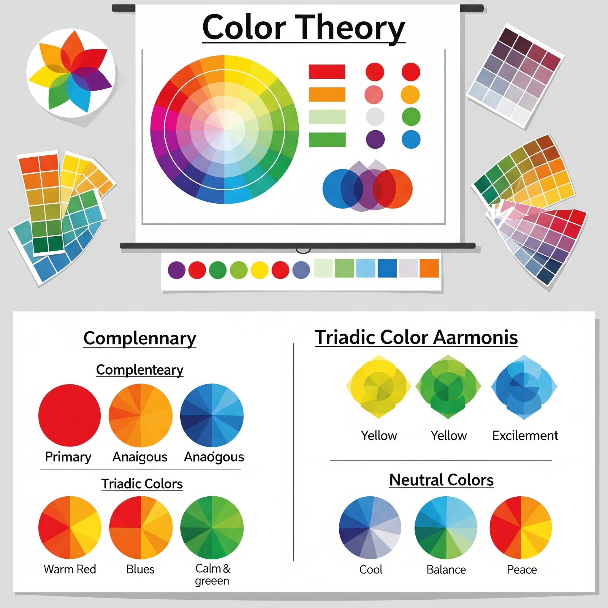 색채를 조합할 때는 조화(Harmony)가 정말 중요해요. 대표적인 조화 방식은 다음과 같습니다.